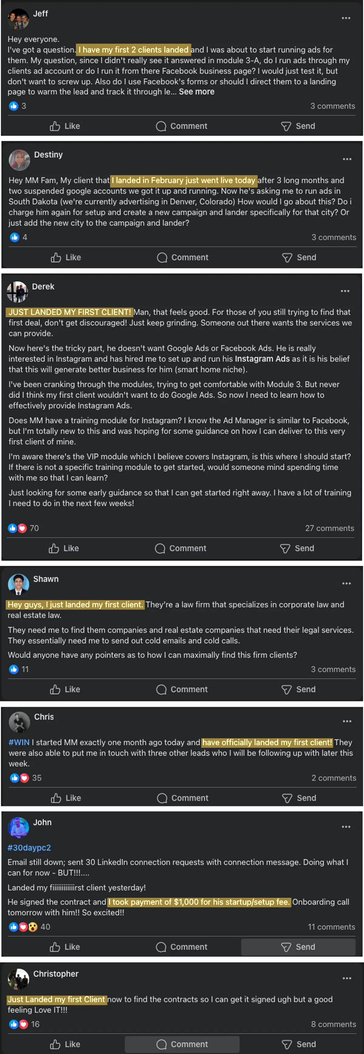 Dolev had years of digital marketing experience but no real client wins. Overwhelmed by too much information, he felt lost and stuck—unable to take serious action. After going through the system, he stayed focused, followed one path, and within just 3 weeks, he landed his first client. Now, for the first time, he's confidently selling, closing, and growing.